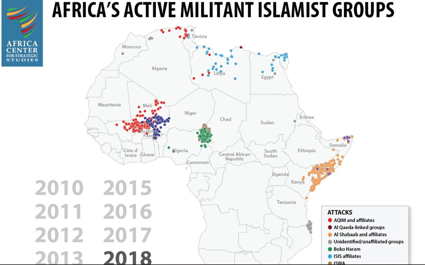 Seit 2012 hat sich demnach die militante islamistische Aktivität in Afrika verdoppelt. Und während im Jahr 2010 noch fünf militante islamistische Gruppen in der Region gezählt wurden, ist diese mittlerweile sogar auf 24 angestiegen.