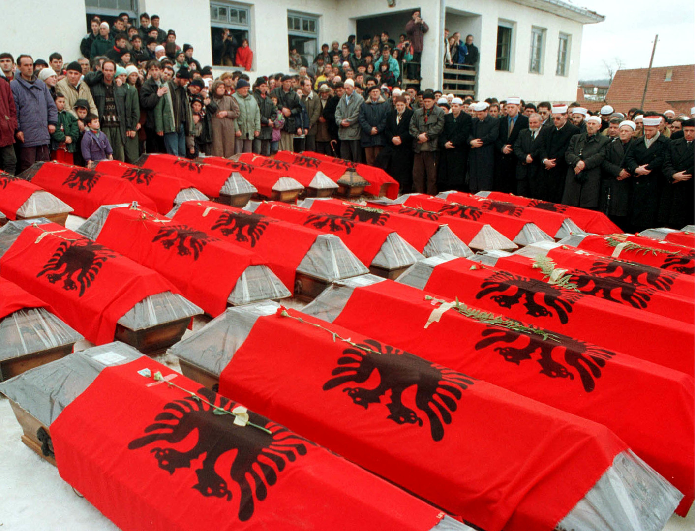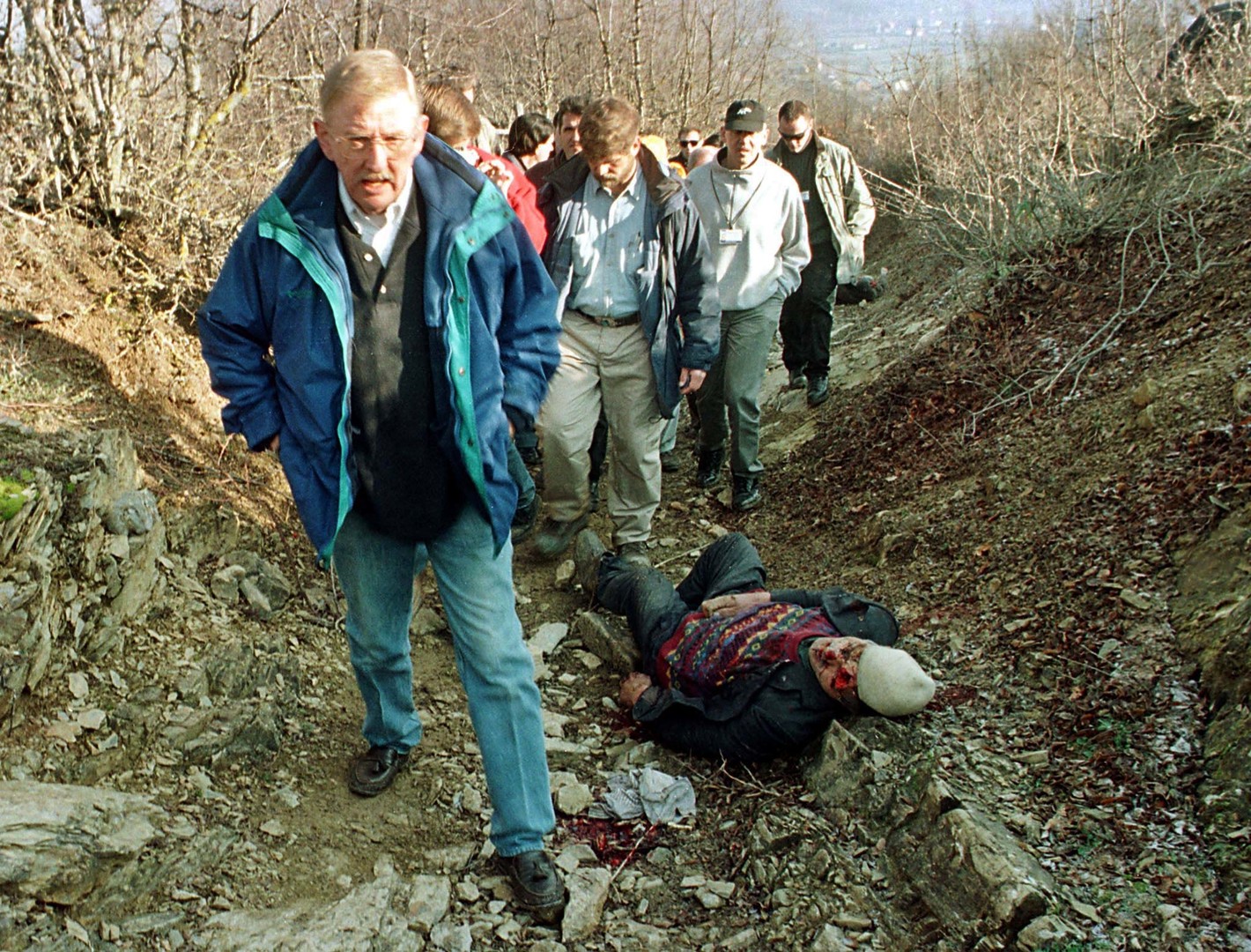 In der folgenden Nacht hatten UCK-Milizen das Dorf wieder eingenommen. Am Morgen des 16. Januar führen sie die internationalen Journalisten und OSZE-Beobachter zum Hohlweg mit den Leichen.
