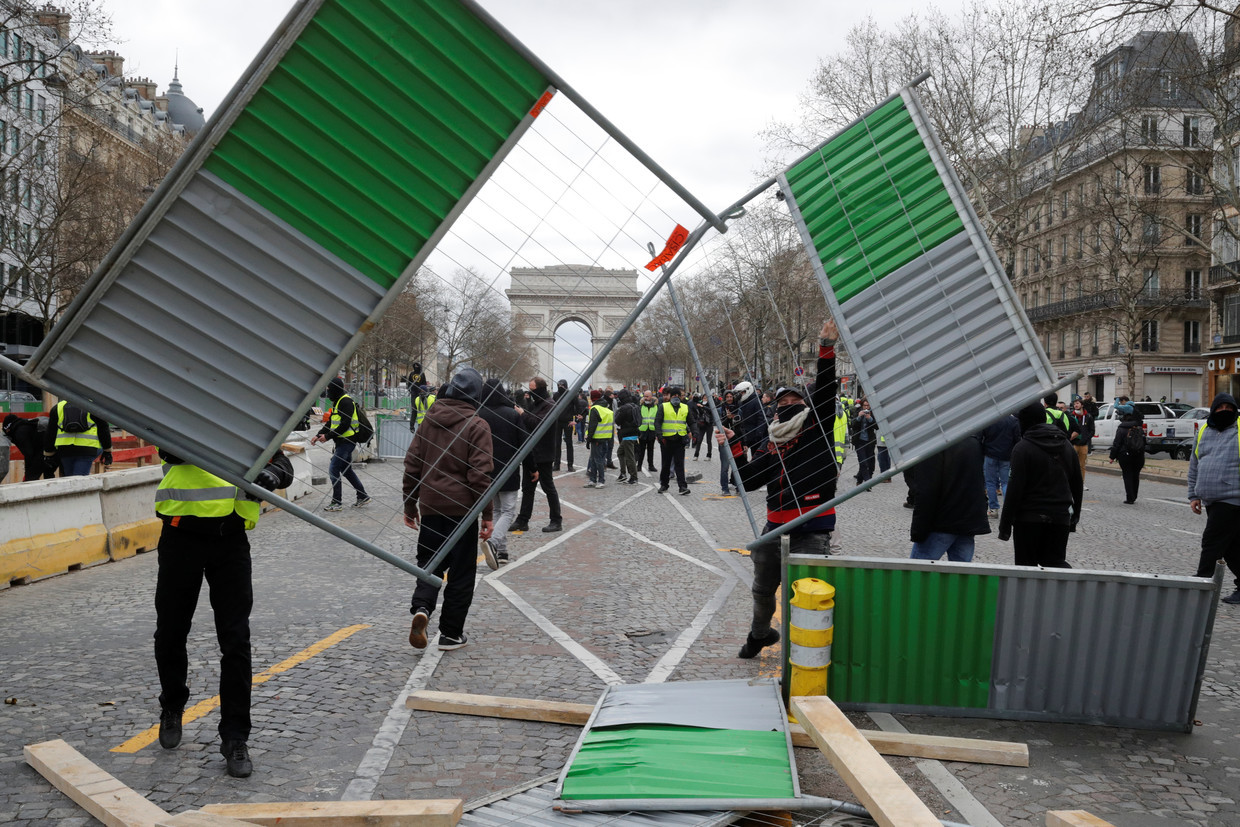 Einige Demonstranten versuchten, Barrikaden zu errichten, um die Straßen um den Place Charles de Gaulle herum zu blockieren, was die Polizei dazu veranlasste, mit Maßnahmen zur Massenkontrolle zu reagieren.