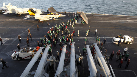 An Deck der USS Abraham Lincon beim Passieren der Straße von Hormus