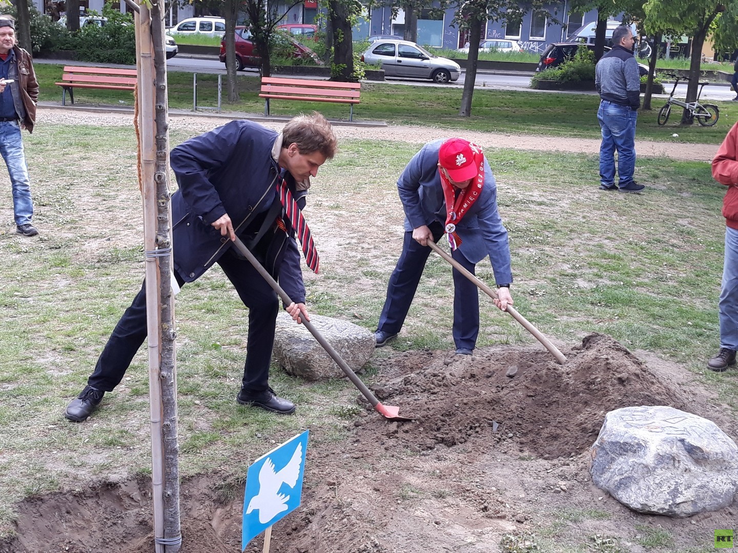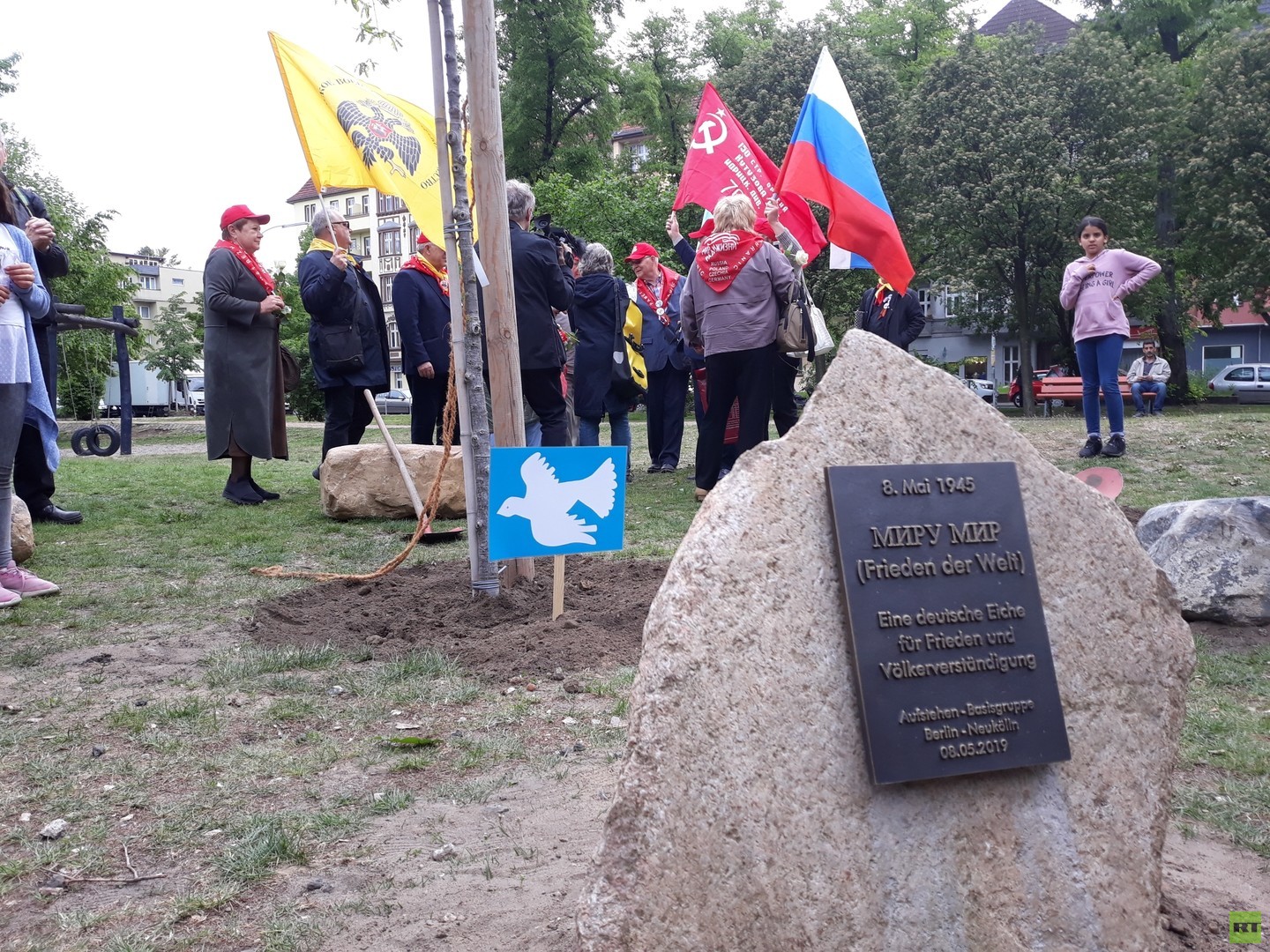 Dann also ohne Amtsträger – aber dafür mit viel Herz – fand dieses Friedensbekenntnis statt, als das wohl einzige dieser Art an diesem Tag in Berlin. Mit einem nachhaltigen Zeugnis: ein Baum samt Gedenkstein und einer Tafel wird nun Besucher des beliebten Spielplatzes am Hertzbergplatz in Berlin-Neukölln an diesen Tag erinnern. An dieser Stelle, wo sich die Bürger selbst zu Wort meldeten und sich stark engagiert haben, fiel das Schweigen der offiziellen bundesdeutschen Politik besonders auf.
