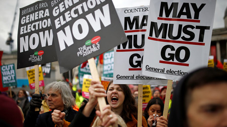 Protesters marching toward Trafalgar Square demanding a general election now. #London#protestpic.twitter.com/b3MI7GlNNV