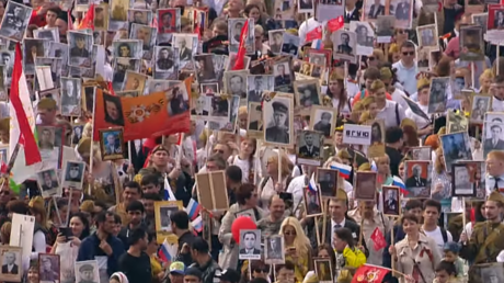 RT-Spezial: Tausende Menschen tragen Fotos ihrer Vorfahren beim "Unsterblichen Regiment" (Video)